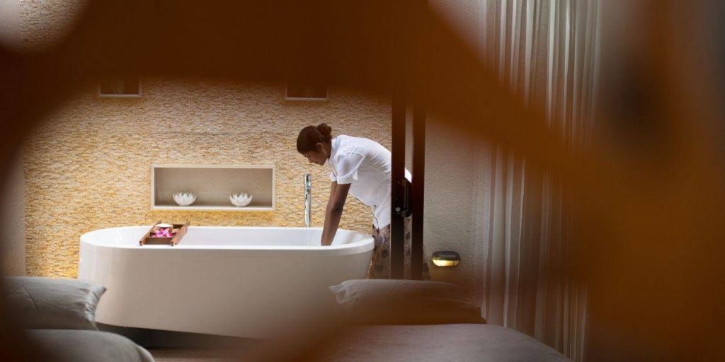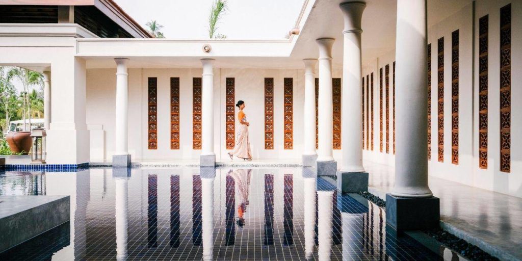 You’ll stay in one of 152 rooms or 32 villas, all spacious and tastefully designed with warm woods, local fabrics, oversized soaking tubs, and private outdoor areas. Pool villas offer even more seclusion, ideal for honeymooners or those seeking privacy with a view. The resort is thoughtfully laid out, with shaded walkways, tropical landscaping, and a calm, balanced energy throughout.