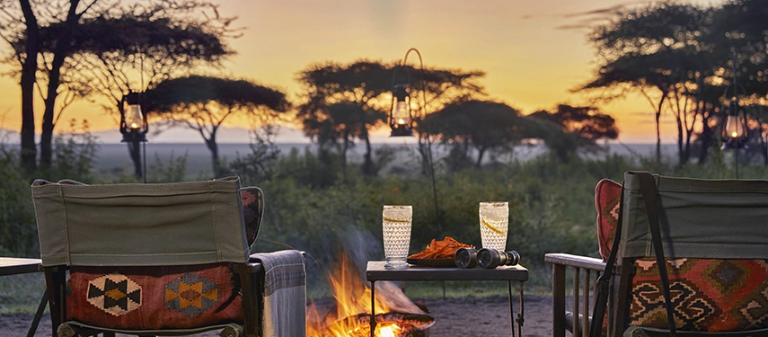 Between game activities, the camp offers a warm, welcoming atmosphere. Meals are generous and unfussy, served communally beneath open skies or by lantern light, while evenings are spent sharing stories around the campfire as the sounds of the Serengeti drift through the darkness.