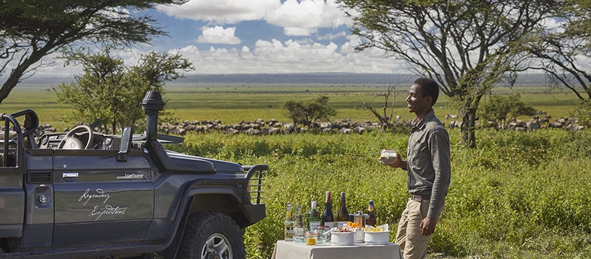 Days revolve around expertly guided game drives that place you close to the action, whether that is dramatic river crossings in the north or vast calving herds and predators on the open plains of the south. Guides are highly experienced, reading the land and the movement of animals with precision, ensuring every drive feels purposeful and rewarding.