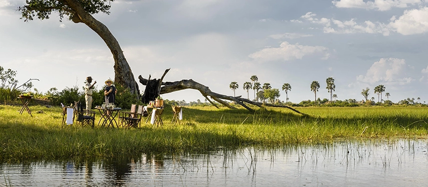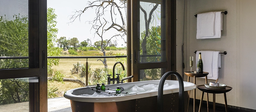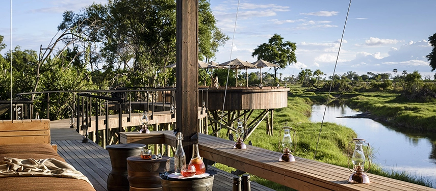 The guiding philosophy at Xigera is “anything, any time” — a genuine commitment to flexibility that extends from bush breakfasts on private decks to candlelit boma dinners and chef’s table experiences in the open-plan kitchen. Activities range from game drives and walking safaris to glass-bottomed mokoro excursions, motorboat trips, helicopter flights, seasonal fishing and a Baobab Treehouse sleepout beneath an open sky. A spa, daily yoga programme, Technogym and heated pool complete the picture.