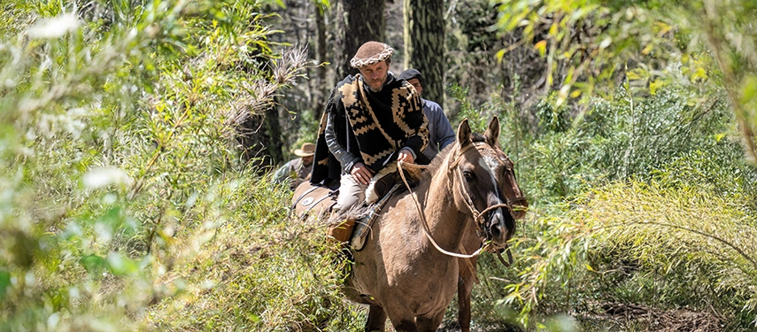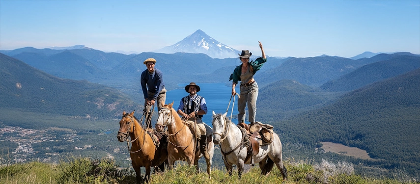Over the course of the journey, you will ride through lenga woodlands, reed beds, high-altitude lagoons and vast araucaria forests, their ancient silhouettes standing sentinel across the slopes. Each day unfolds differently, some focused on steady progression between camps, others designed to explore a single dramatic environment in depth. Long riding hours are rewarded with sweeping views of Lanín Volcano, Quillén Lake and the surrounding Andean peaks.