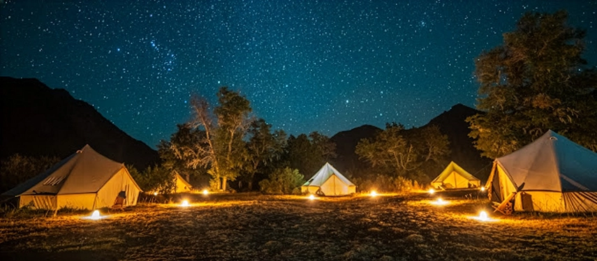 The itinerary balances challenge and comfort. Camps are thoughtfully arranged, with bell tents, shared facilities, hot showers and hearty meals prepared over open fires. Logistics are seamlessly handled by the support team, allowing you to focus entirely on the ride, the horses and the scenery. Personal belongings are transported between camps, and experienced guides ensure both safety and a strong connection to the land.