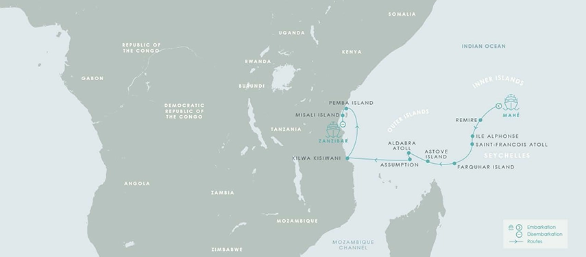 START: Mahé, Seychelles | Finish: Zanzibar, Tanzania